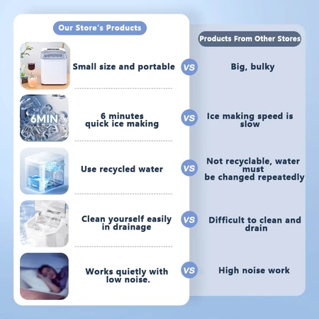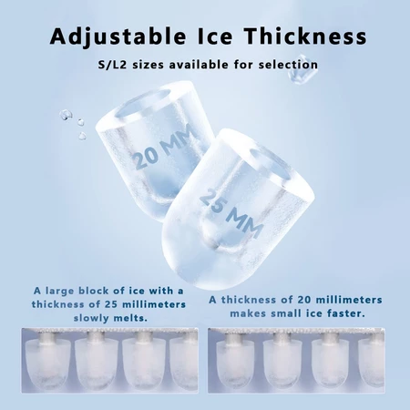 – Save water resources, it can be recycled after the ice has turned into water: the ice will automatically continue to do ice after melting into the water tank, and there is no need to deliberately drain water.