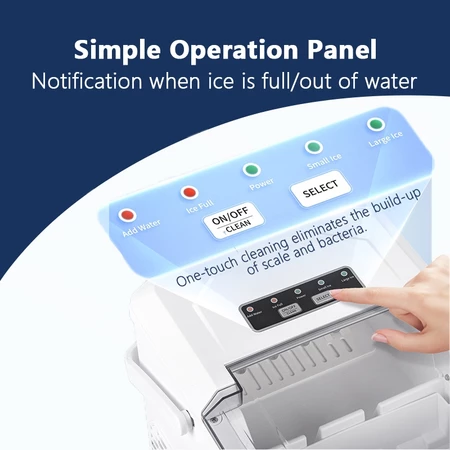 – Simple panel: two sizes of ice cubes, ice full/water shortage tips