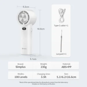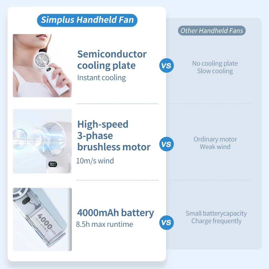 Simplus Handheld Fan Portable Bladeless Mini Fan with Ice-Cooling Function 100Level Adjustment Kipas Tangan 11H 4000mAh